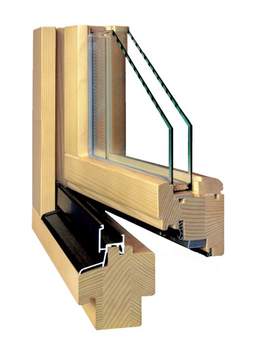 - Элементы изделий изготовлены из высококачественной древесины. Это европейская сосна/лиственница особого радиального распила. Основа окон клееный брус в три слоя, подсушенный до влажности в 10%;