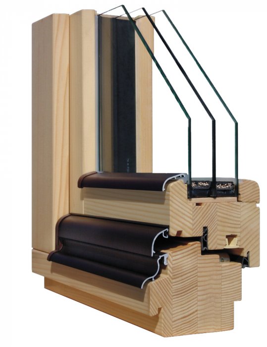 - Элементы изделий изготовлены из высококачественной древесины. Это европейская сосна/лиственница особого радиального распила. Основа окон клееный брус в три слоя, подсушенный до влажности в 10%;